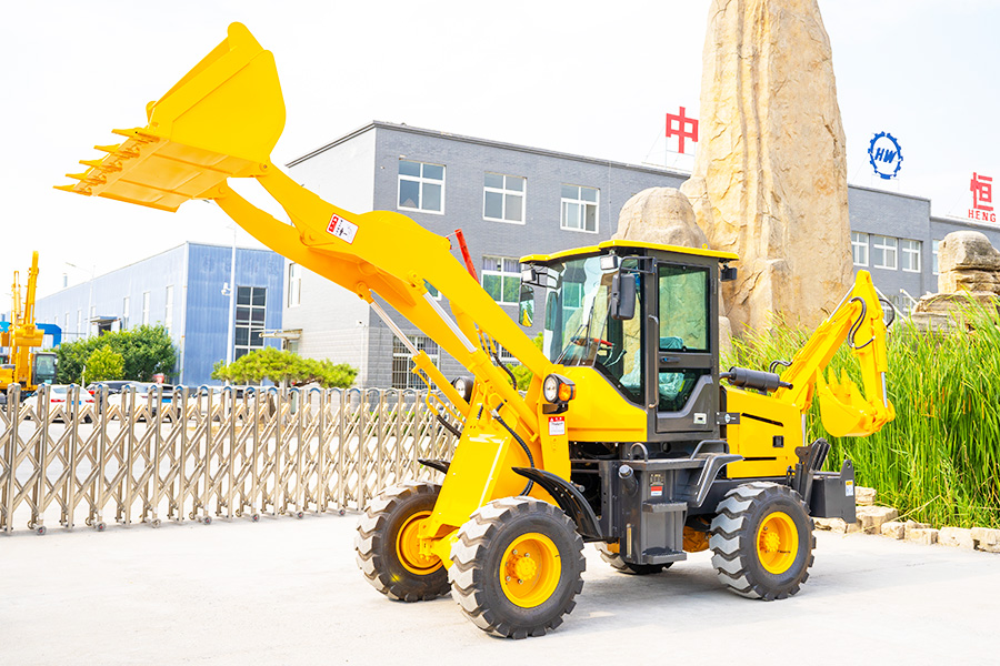 HW10-20 backhoe machine series small excavator features a unique design where the original loading function remains unaffected while scraping. The excavation part is folded as the counterweight, while the loading part serves as the chassis support during excavation.