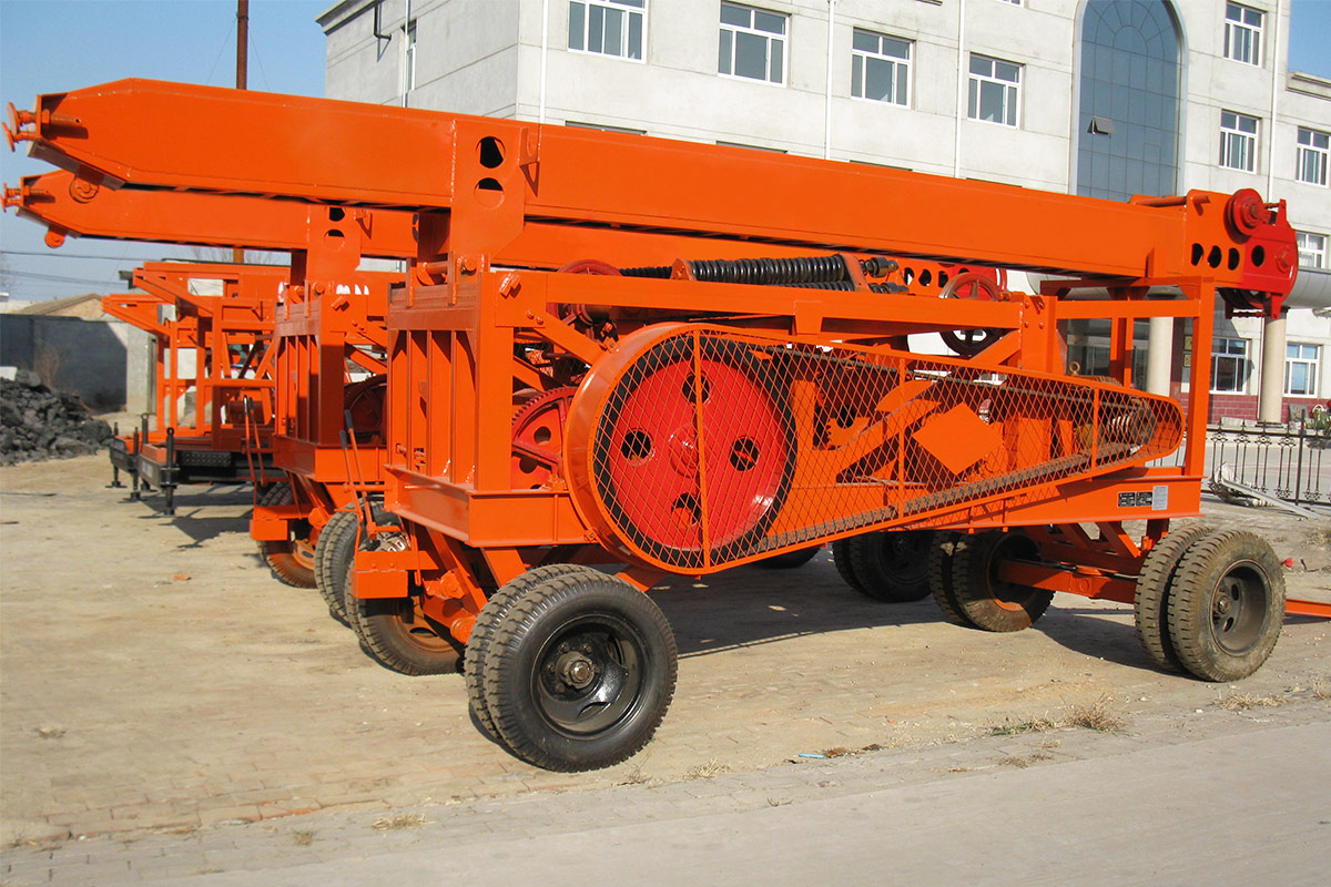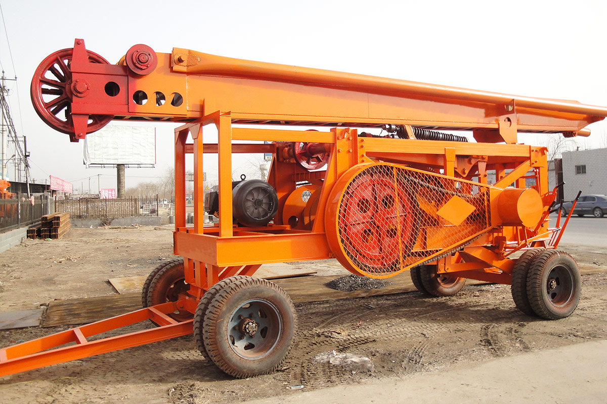 3. Percussion drilling rig is very popular in the market currently, all of its components are all installed in the trailer, like electric motor, hoist, mast etc, integrate motion. The percussion drilling rig uses the crank-link mechanism to change the power's gyration motion into alternating motion, through the steel cable to drive the drill bit to do up-and-down motion.