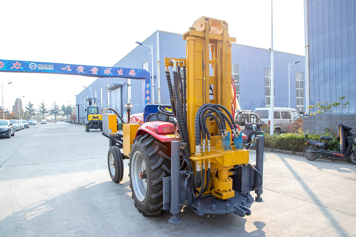 Heng wang water borehole drillling is an integrated drilling equipment that combines a tractor and a pneumatic water well drilling rig. It is easy to walk and is combined with an air compressor.